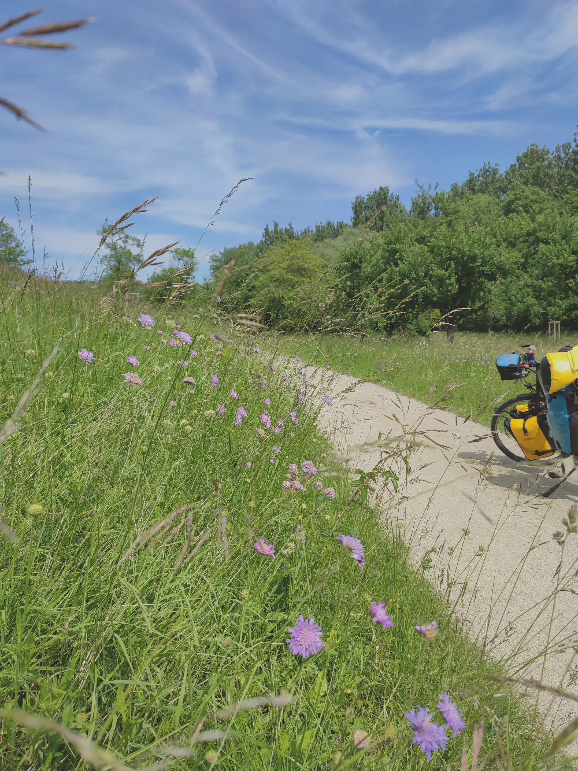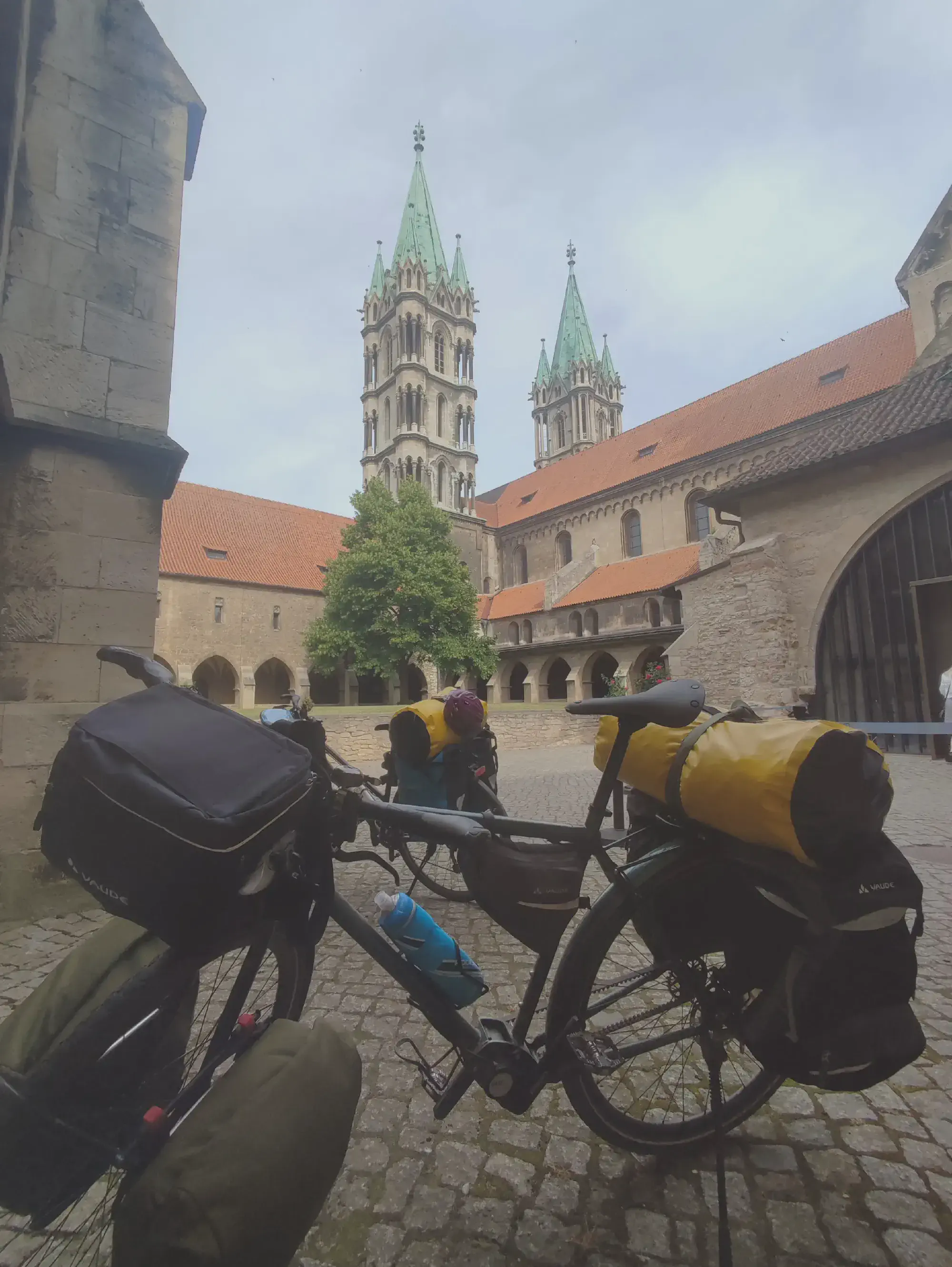 Die meiste Zeit fährt man auf dem Ilmradweg, dann auf dem Saaleradweg. Den kennen wir ja schon aus dem Jahr 2019, der Anblick der Rudelsburg ist schon immer wieder beeindruckend. Ab Bad Kösen eigentlich eine wunderschöne Strecke am Weinhang entlang bis zum Blütengrund in Naumburg — allerdings nicht wenn Weinmeile ist. Dann lieber die Landstraße fahren ;)