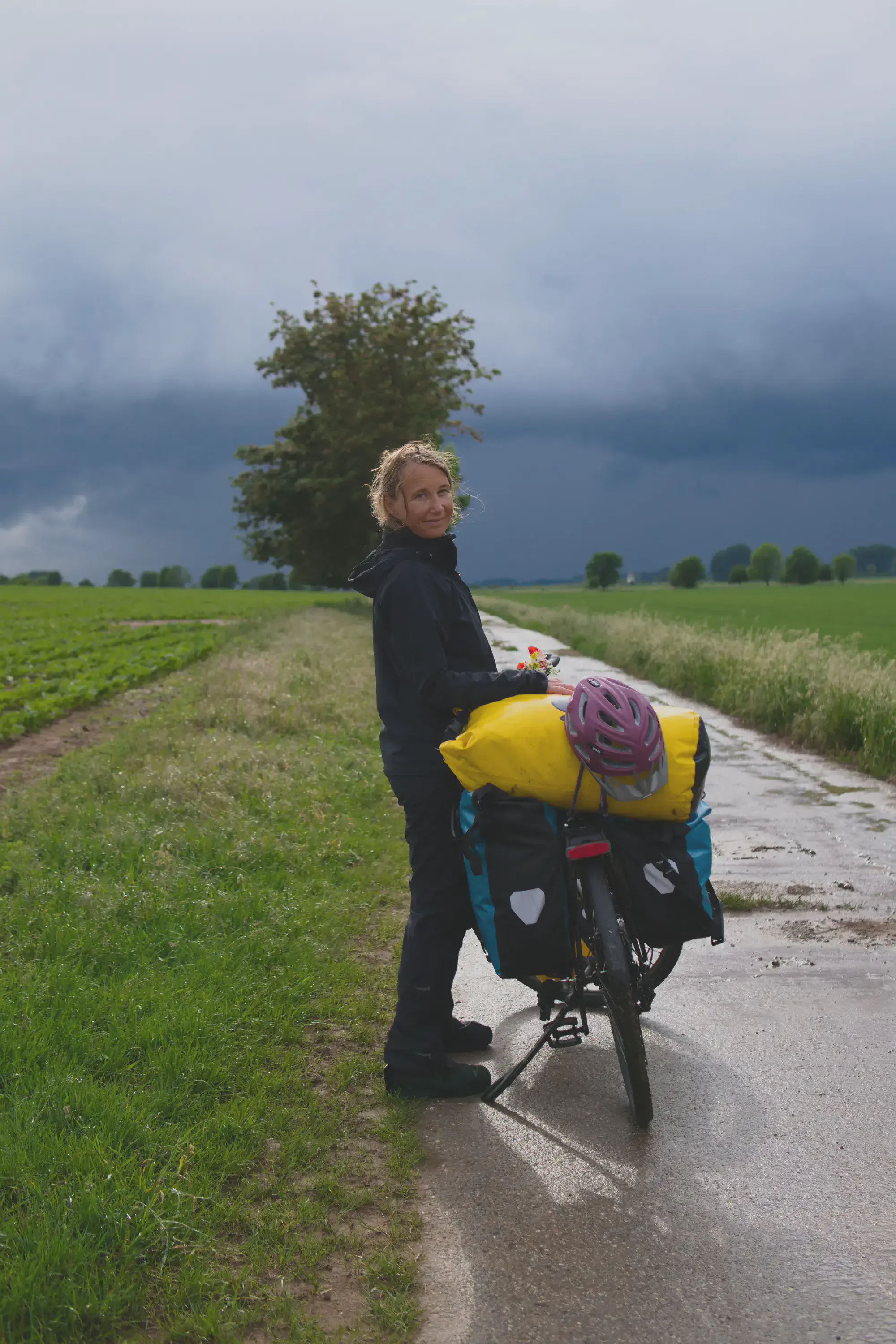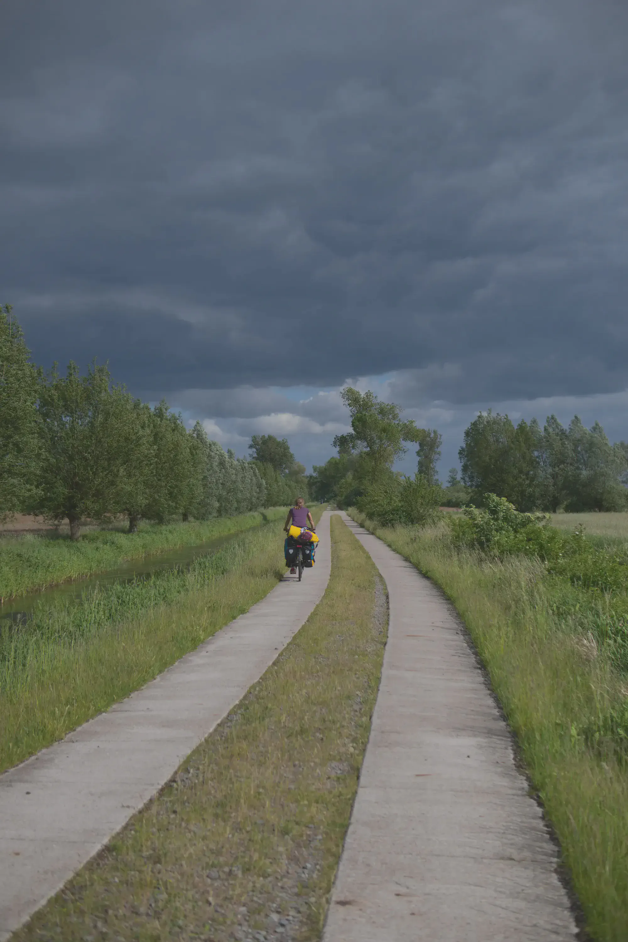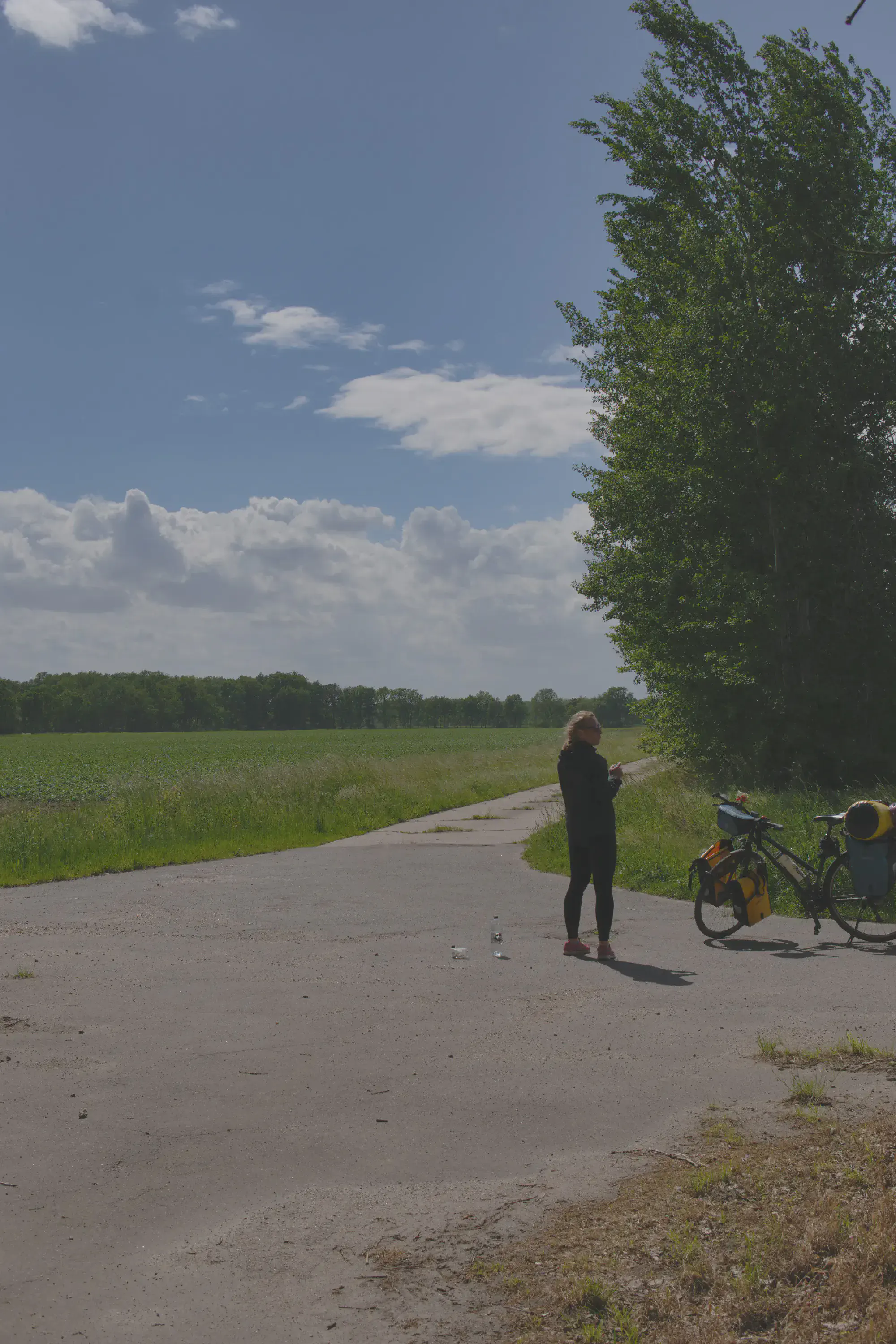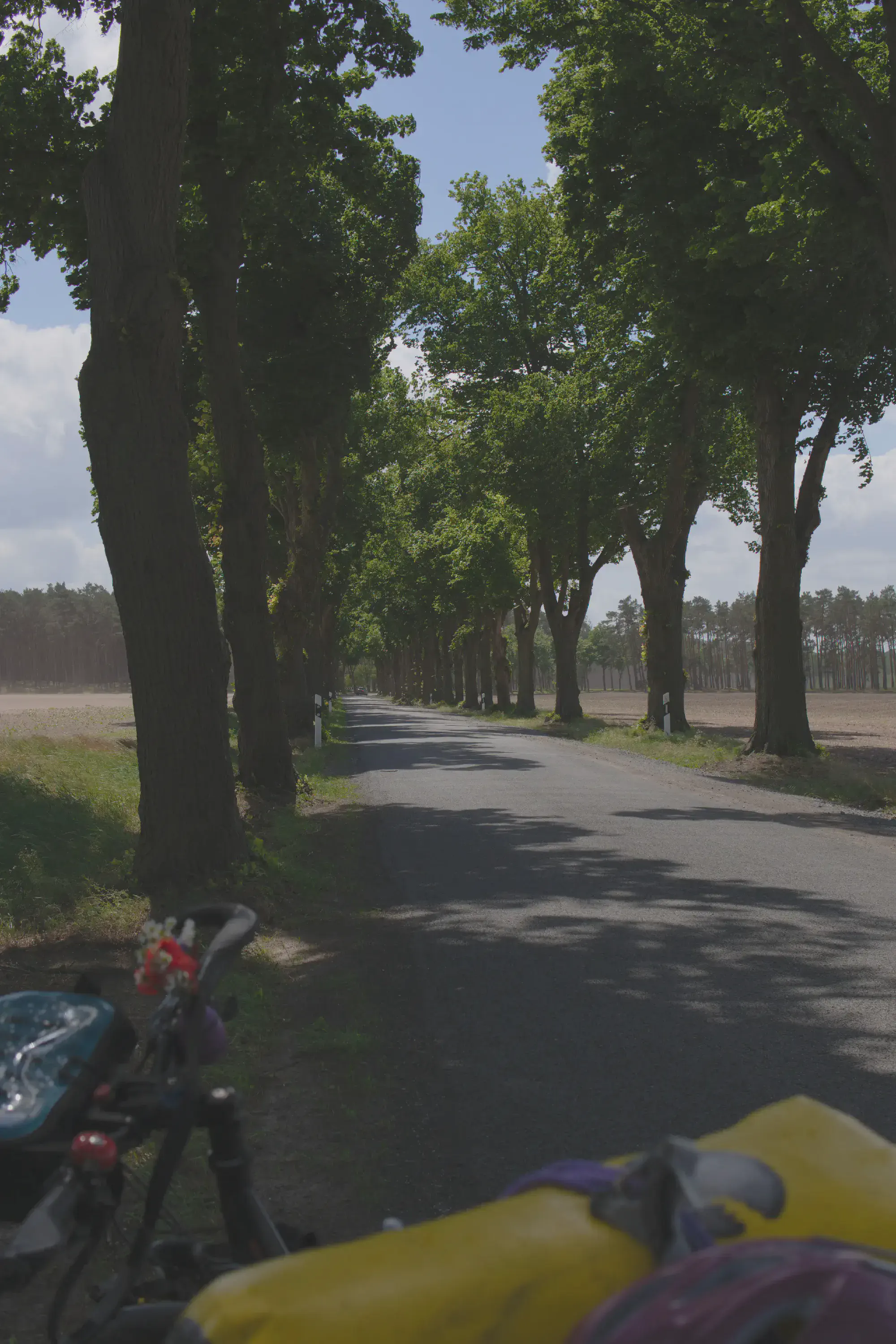 Spätestens auf dieser Etappe wird auch klar warum es Iron Curtain TRAIL heißt und nicht Iron Curtain Highway. Von Waldwegen über Schotter, abgerissene Bitumendecken, Kopfsteinpflaster und immer wieder Kolonnenwegen aus Betonformplatten war heute alles dabei. Das senkt die Reisegeschwindigkeit etwas, dafür bleibt mehr Zeit die traumhafte Landschaft zu genießen. Es gibt auch wieder Schilder! Nach 120km bei Marienborn könnten wir endlich digitale und analoge Welt wieder vereinen. Außerdem hatten wir heute ausreichend Gelegenheit unsere Regenkollektion auszuführen und dennoch genau eine halbe Stunde Sonne pur in Schöningen um Caffee&Kuchen zu genießen. Kann man im strömenden Regen eigentlich ein Zelt aufbauen? Klar, muß man aber nicht wenn es so herrliche Gästezimmer in Veltheim gibt. Mit heißer Dusche. :-))
