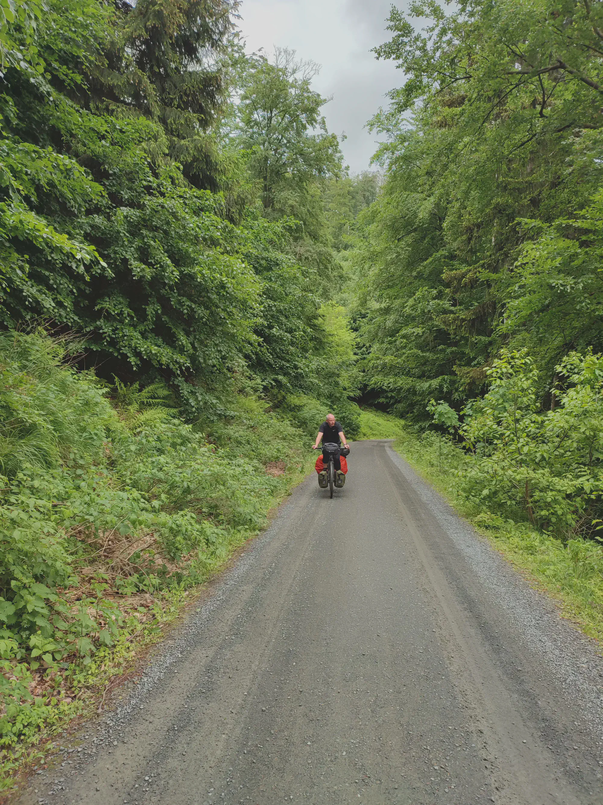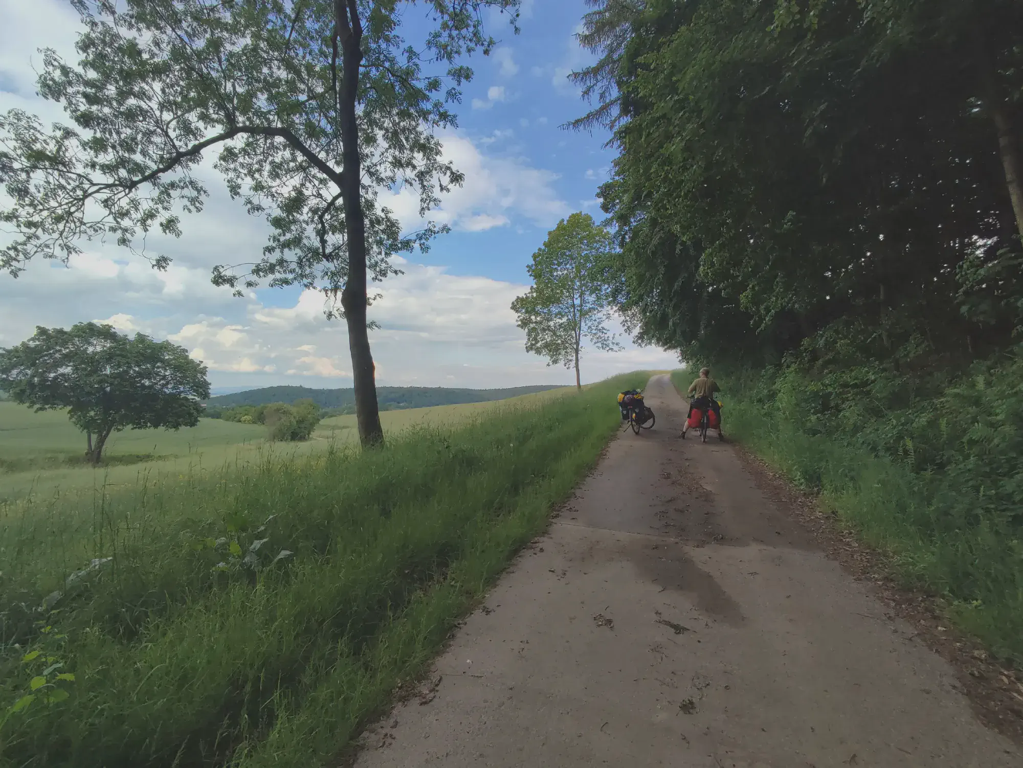 Nach einer entspannten und erholsamen Nacht im Zelt geht’s weiter immer entlang der ehemaligen deutschen Grenze. Die Beschilderung ist leider bescheiden bis nicht existent. Ohne meine bewährten Helferlein oruxmaps und openandromaps, der Vorplanung am Rechner und einer gehörigen Portion Ignoranz gegenüber den Hinweisschildern: keine Chance. Man kommt da sicher auch irgendwo hin, aber nicht auf dem ironcurtaintrail. Wenn man aber dessen offiziellem track folgt, dann radelt man auf einsamen Straßen durch verwunschene Dörfer und idyllische Natur. Einfach traumhaft.