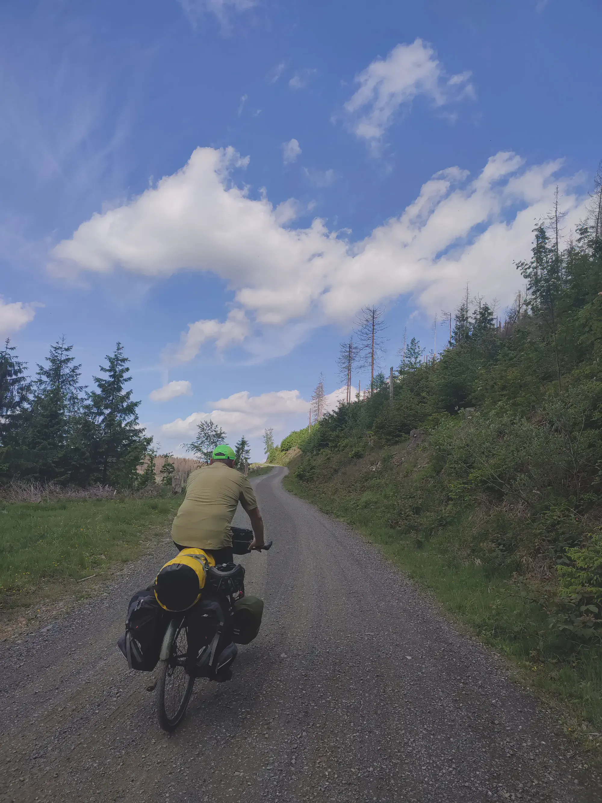 Nach ein paar Kilometern sind wir heute bei Abbenrode vom offiziellen Track nach Westen abgebogen — für einen kleinen sidequest. Über Harlingerode und Göttingerode ab auf den Steinbrecherweg und damit die ersten ehrlichen Höhenmeter gesammelt. Auf diesem Weg sieht man aber auch was die Begriffe bedeuten: Waldsterben, Waldumbau, Borkenkäfer. In 30 Jahren steht da bestimmt ein schöner Mischwald, im Jahr 2022 muss man den sehr jungen Wald schon sehen wollen. Radfahrerisch war es trotzdem eine Wonne, sehr gut fahrbare Waldstraßen.