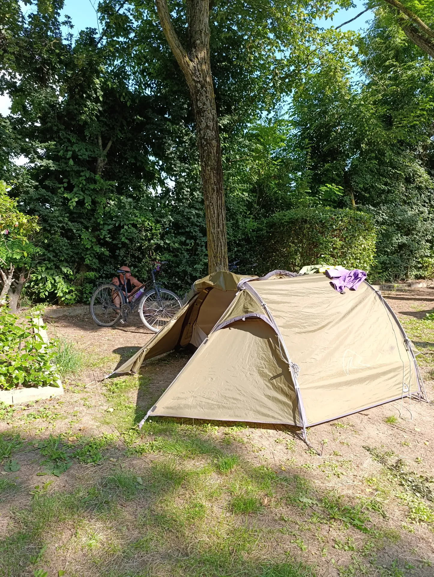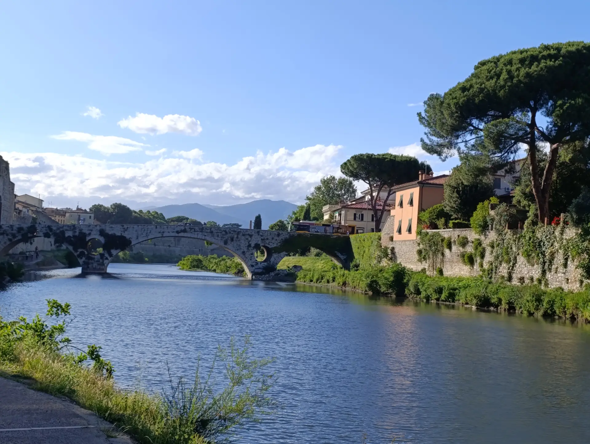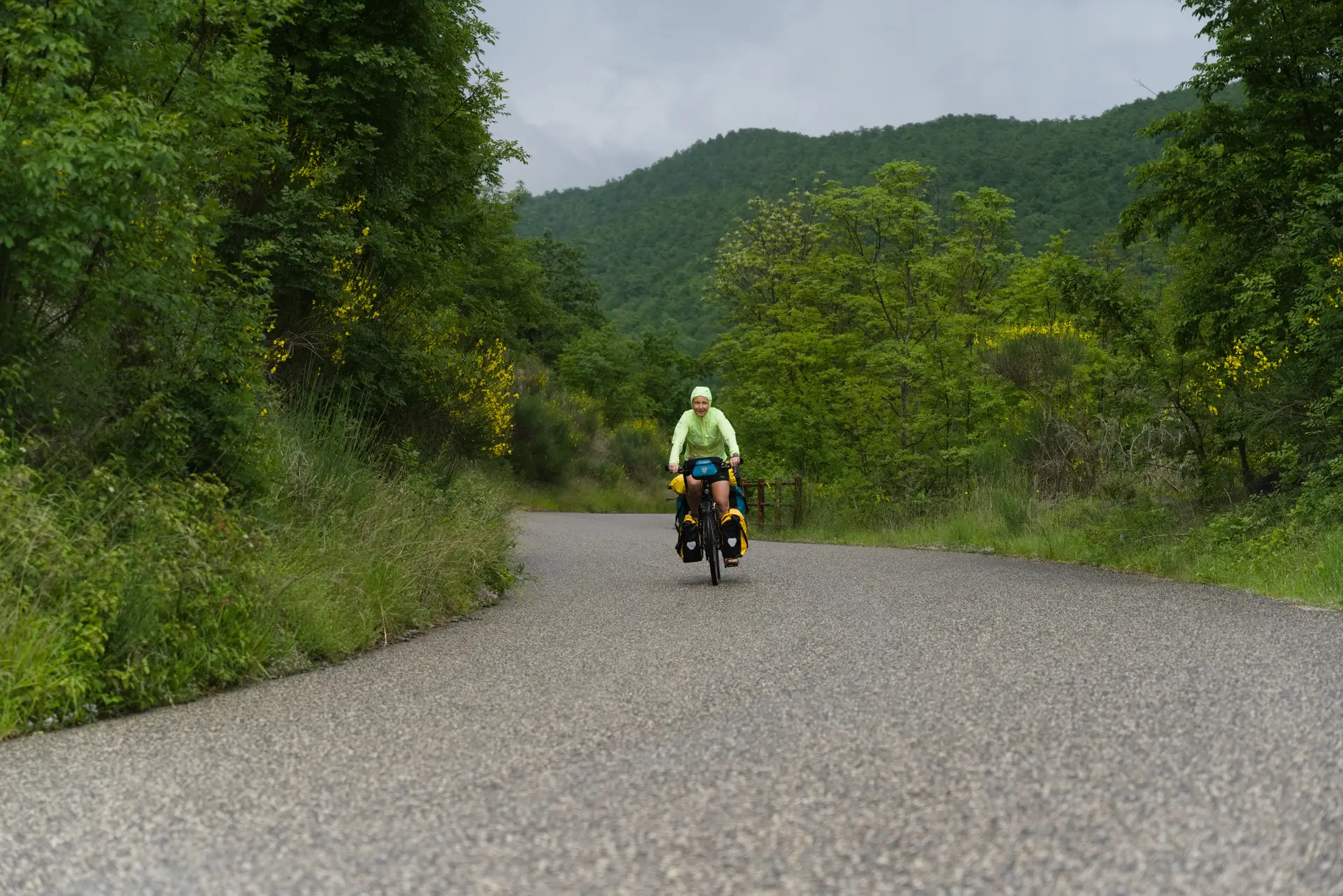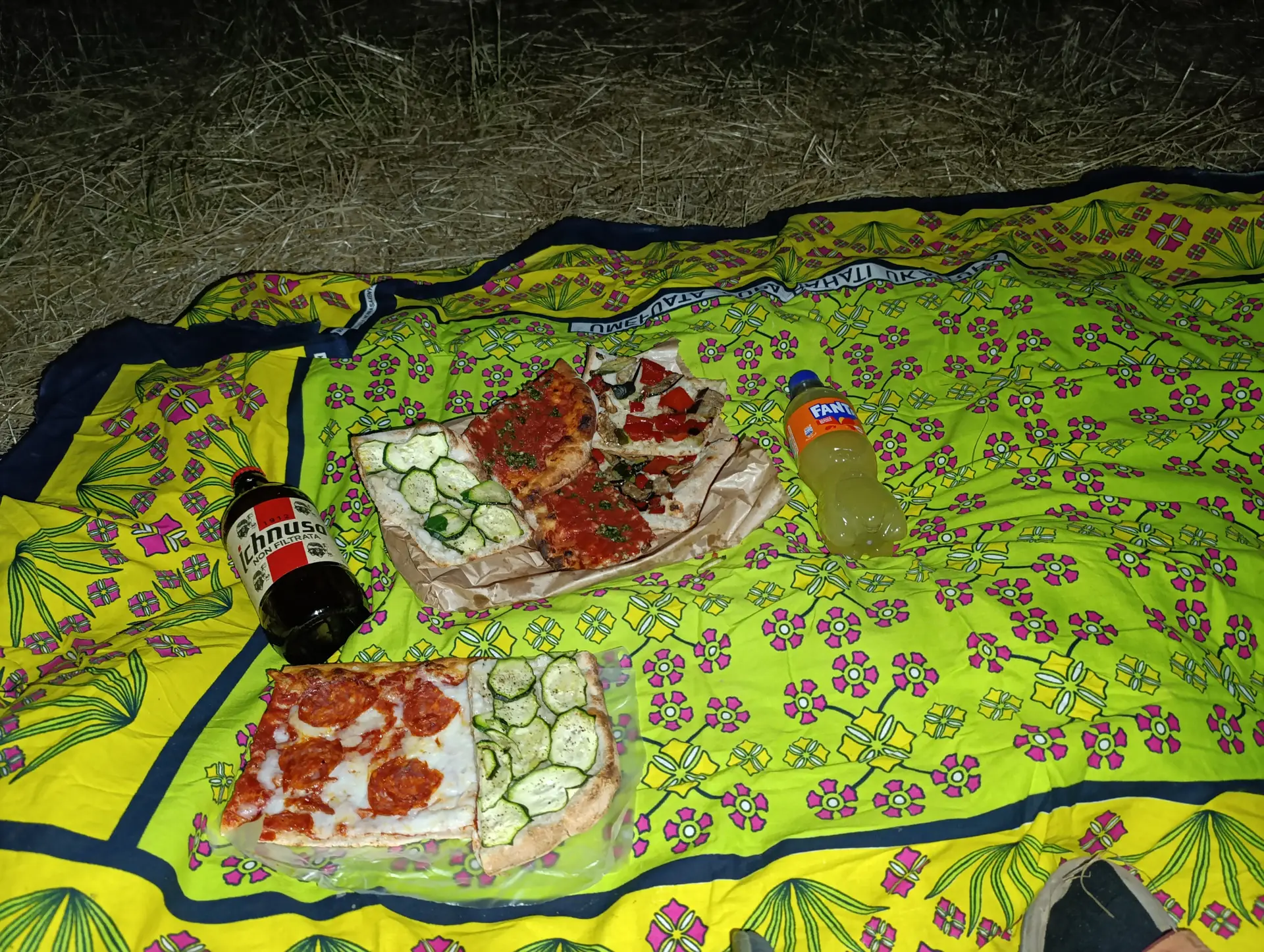 In Pistoia war es schwierig, eine passende Unterkunft zu finden. Also habe ich am Fluss eine schöne, kleine und frisch gemähte Wiese gefunden. Wir haben vorher in der Stadt noch Pizza und Getränke geholt und dann unser Zelt direkt am Ufer aufgeschlagen. Der Abend war einfach wunderschön: Wir aßen unsere Pizza, umgeben vom lauten Quaken der Frösche und dem Leuchten unzähliger Glühwürmchen.