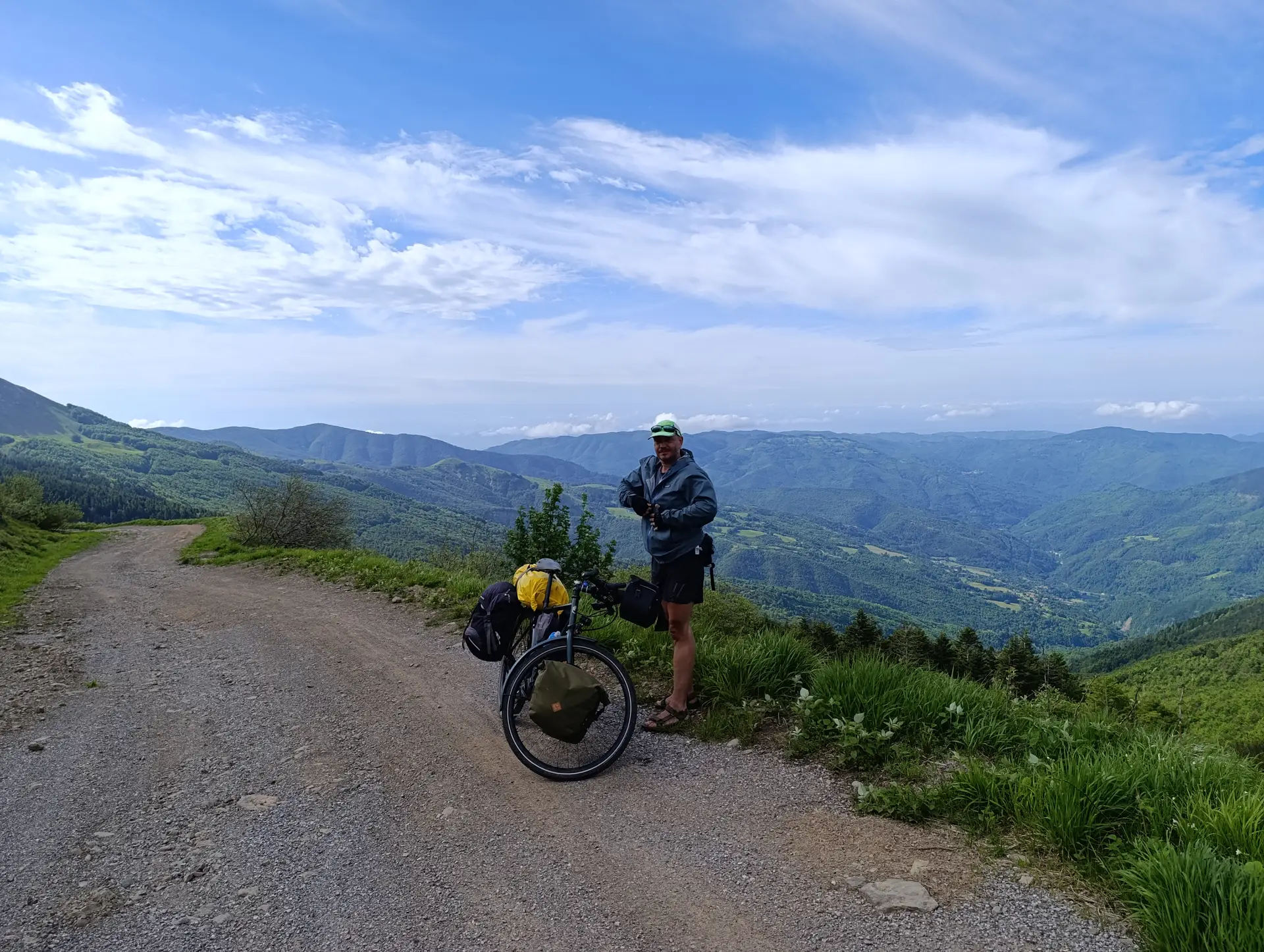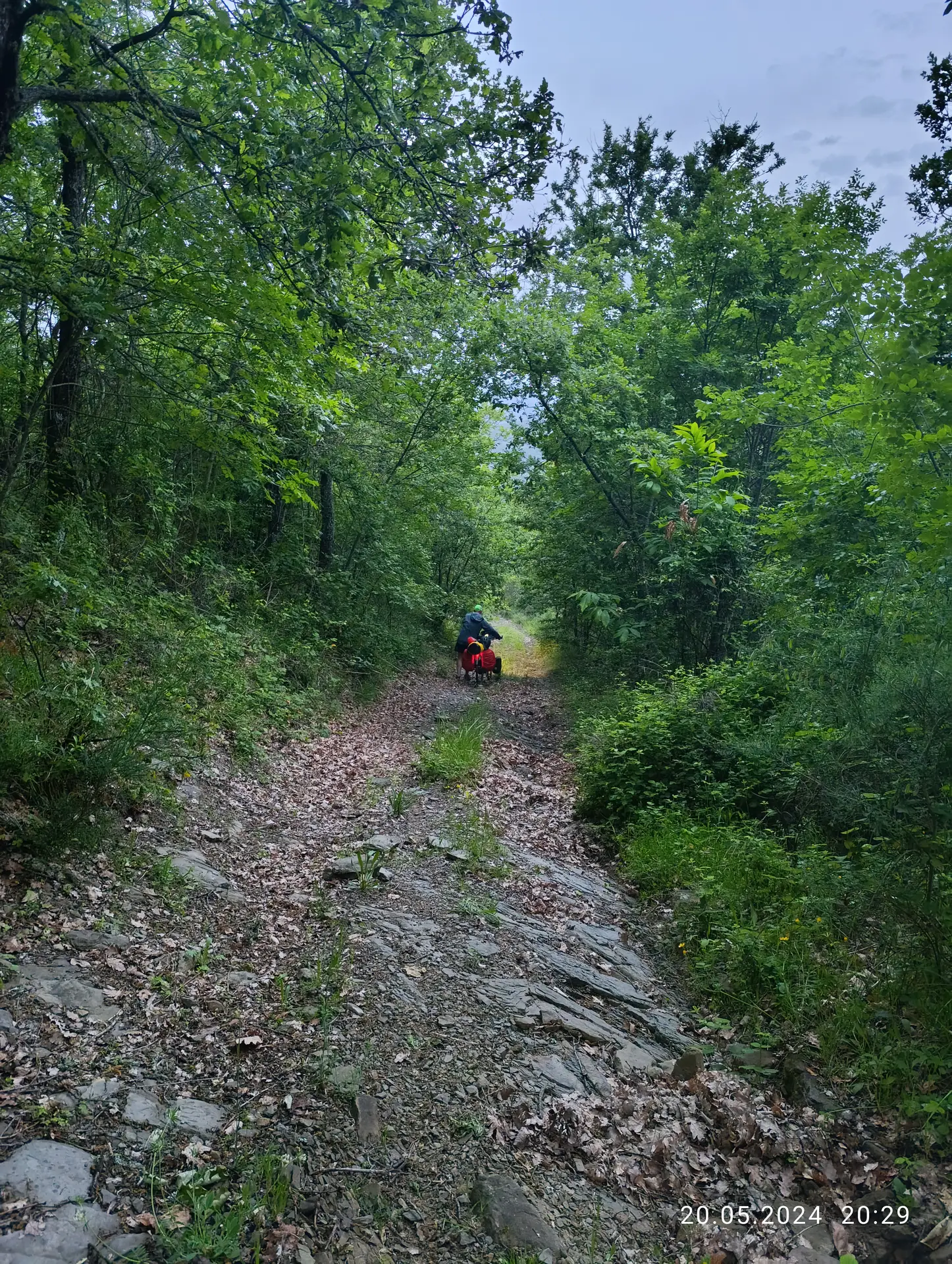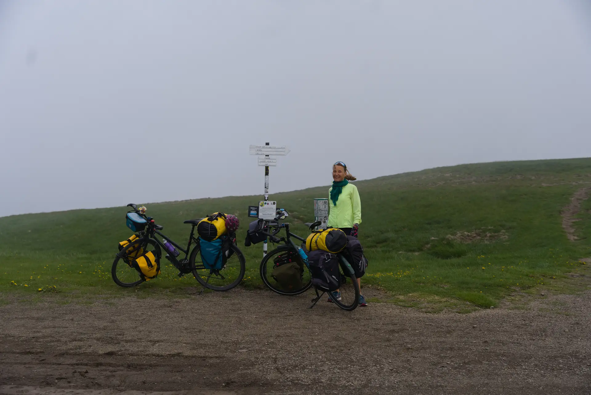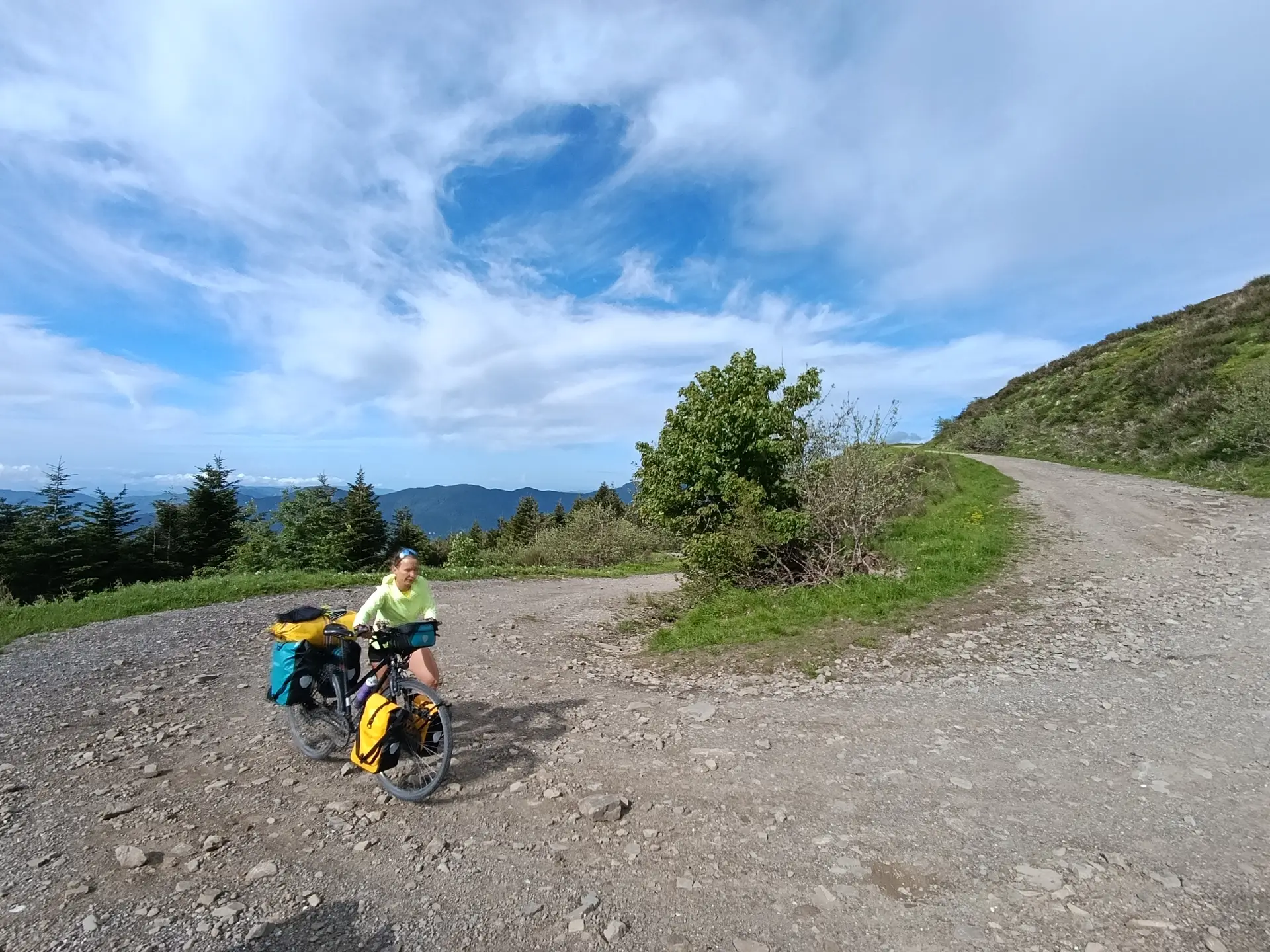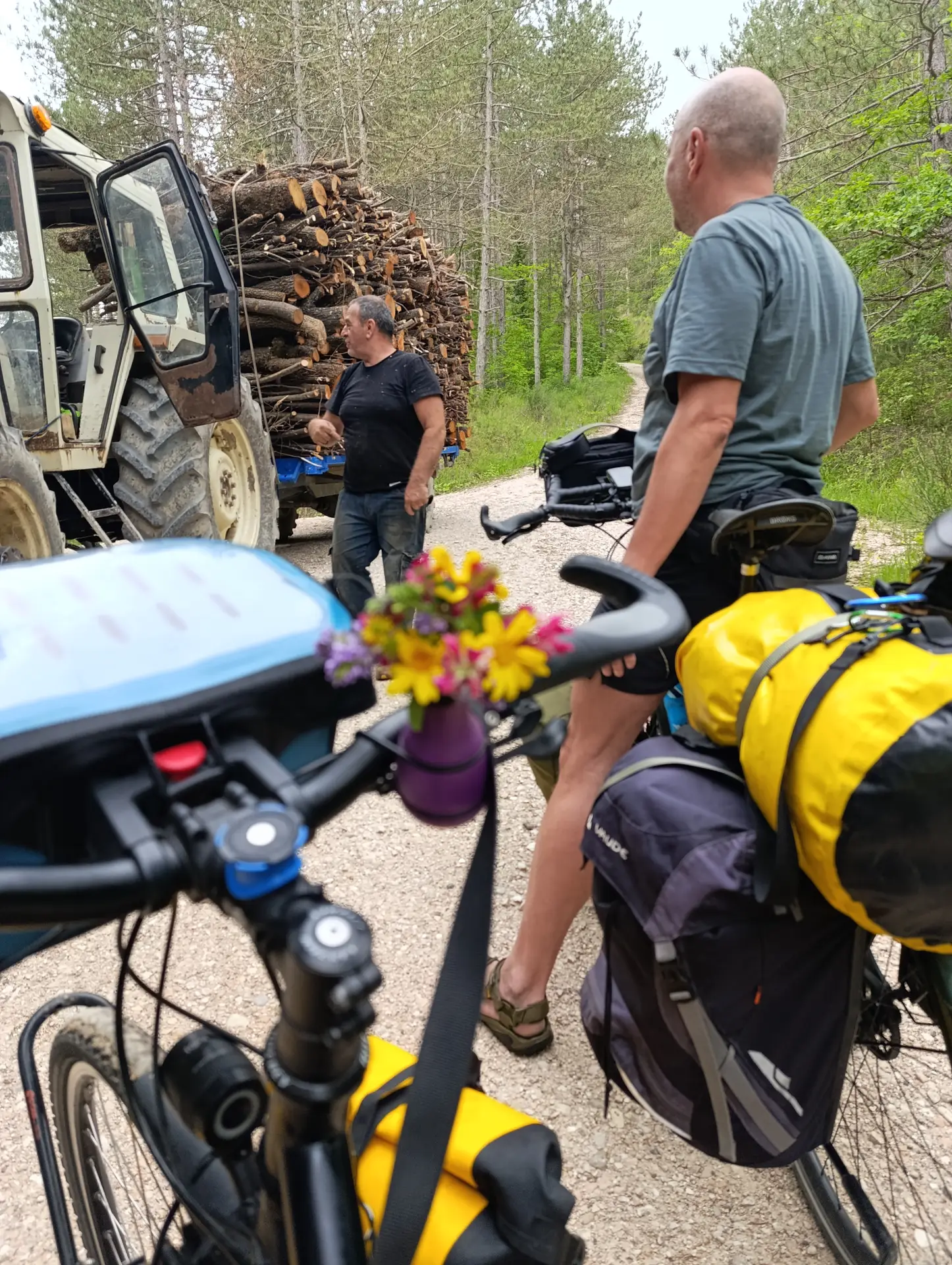 Am nächsten Morgen wachten wir nach einer regnerischen Nacht mitten in Gottes schöner Natur auf. Die Wege waren aufgeweicht und es gab einige harte Schlammpassagen zu bewältigen. Wir mussten ein Stück zurück den Berg hoch, dann fand sich der gestern verpasste Abzweig, der aber zugegebenermaßen wirklich zugewildert war. Also einmal “ab durch die Hecke”, 100 Meter schieben, und dann ging es wieder. Die anschließende Abfahrt über die kleine Schotterstraße hat uns aber für die Strapazen belohnt.