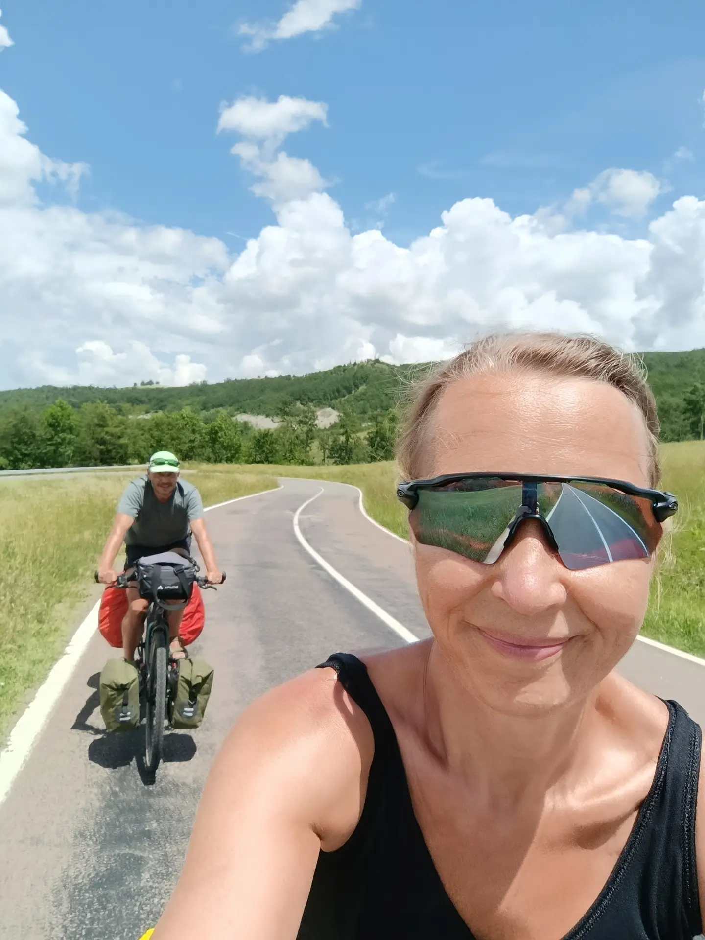 Der 1. Juni begann mit einem strahlenden Morgen. Wir badeten im Fluss, frühstückten auf der Wiese, während Jogger und Spaziergänger mit Hunden vorbeikamen — eine richtig schöne Wildcamping-Aktion, die einfach nur Spaß gemacht hat. Beim Packen sahen wir noch eine ganze Menge Eidechsen mit leuchtend grünen Rücken.
