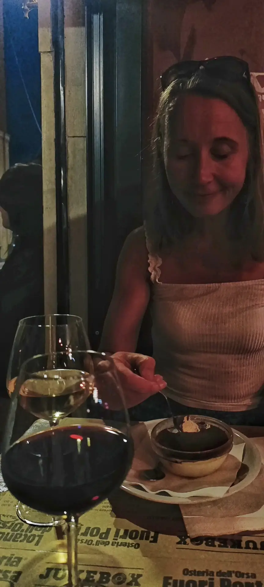 Nachdem wir unser Zelt auf einem okayen, aber nicht besonderen Campingplatz im Osten der Stadt aufgebaut hatten, stürzten wir uns ins Geburtstags-Abendprogramm. Nach einem wunderschönen Abendessen zogen wir noch in ein anderes Stadtviertel. Wir haben den Abend in der Via del Pratello ausklingen lassen, einer Straße bekannt für ihre vielen kleinen, authentischen Bars. Wir saßen in einer kleinen Kneipe, halb auf der Straße, und haben den lauen Abend genossen — ein perfekter Abschluss für einen unvergesslichen Tag.