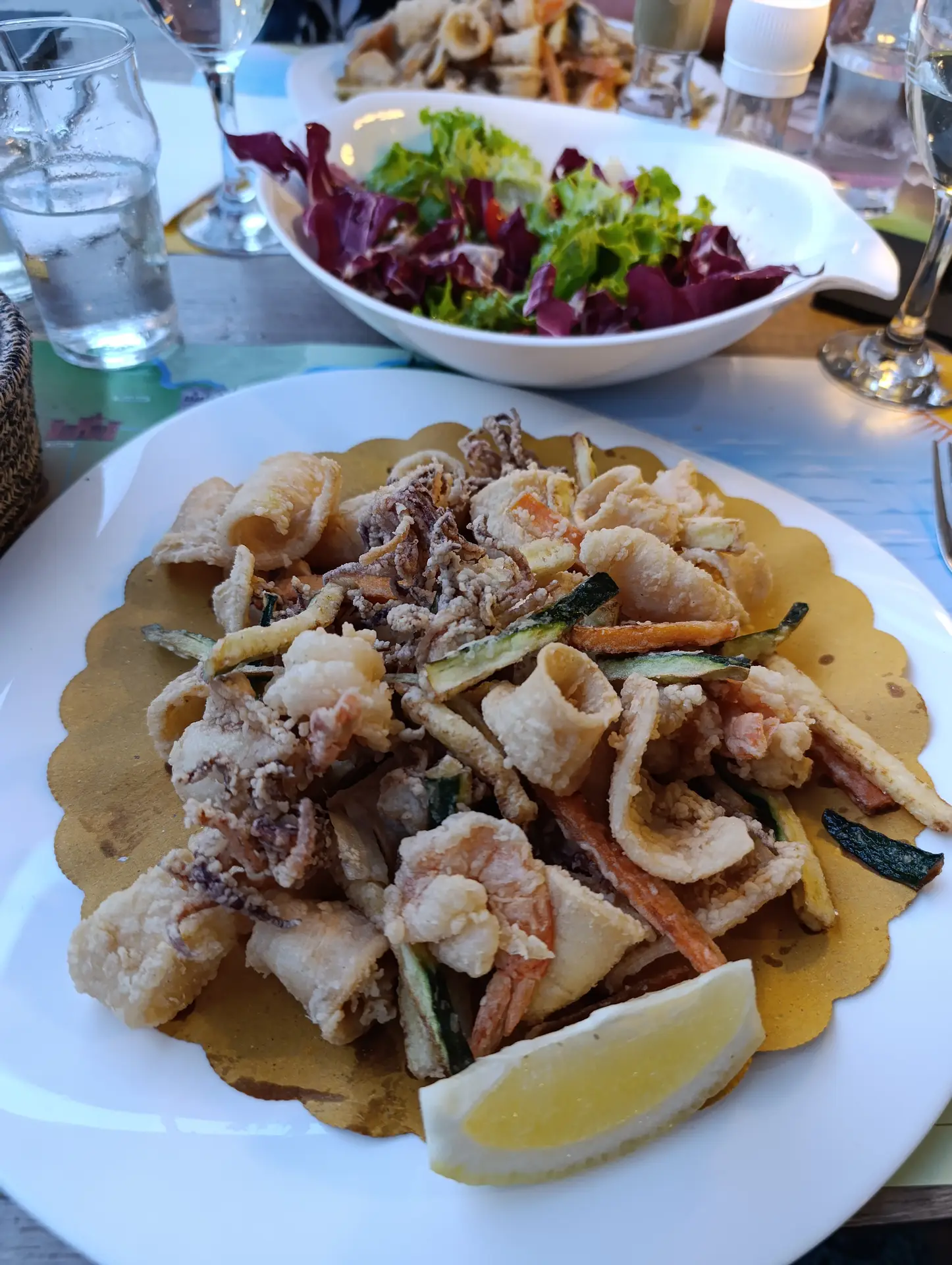 Den Abschluss dieses ersten, wunderbaren Tages bildete die erste Pizza des Urlaubs, die wir am Abend mit Blick auf die Lichter der Küste genossen.