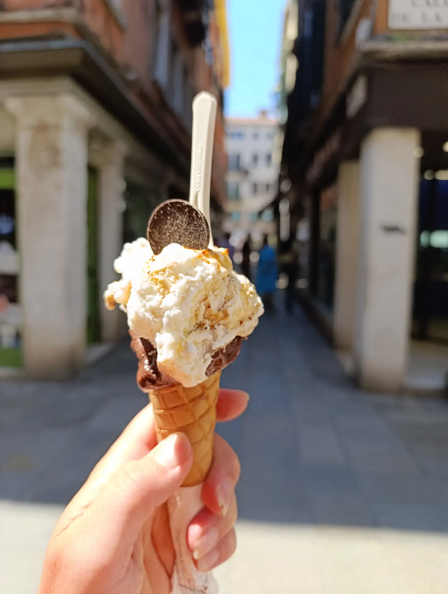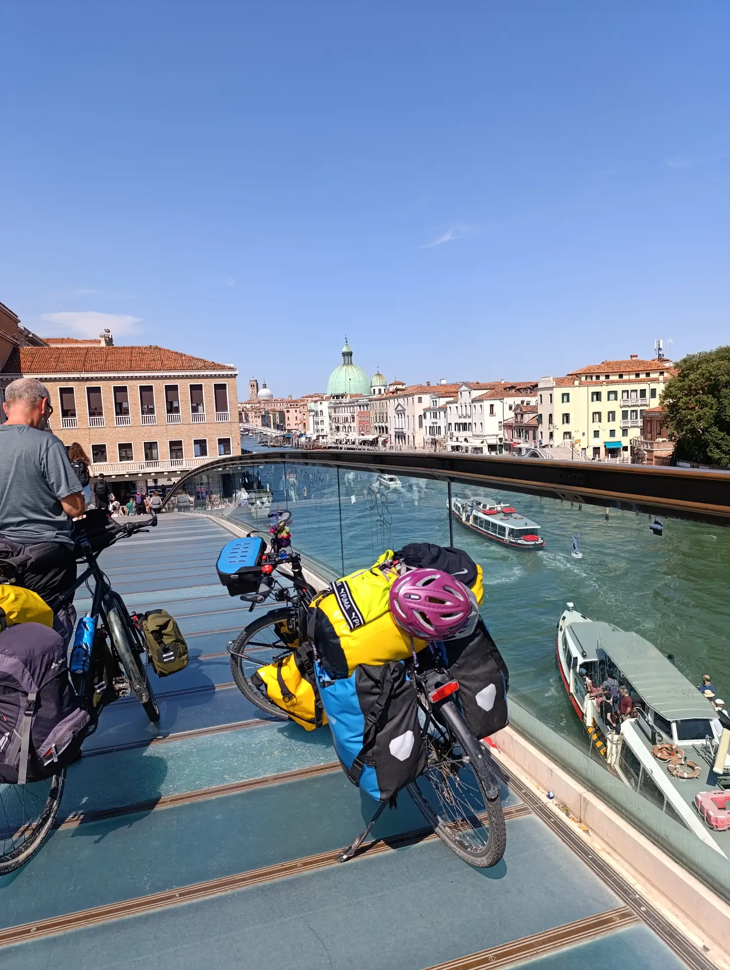 Die erste Herausforderung war, die Räder sicher zu verstauen. Die bewachten Fahrrad-Parkplätze am Piazzale Roma sind eine tolle Erfindung, aber die Zufahrt ist echt schwer zu finden. Schon die Fährfahrt mit dem Vaporetto nach Venedig hinein war spektakulär. Wir haben uns den ganzen Tag einfach durch die Stadt treiben lassen und “People watching” betrieben. Dabei haben wir einen super Spot an der Riva del Ferro entdeckt, von dem aus man diesen wunderschönen Blick auf die Rialtobrücke hat.