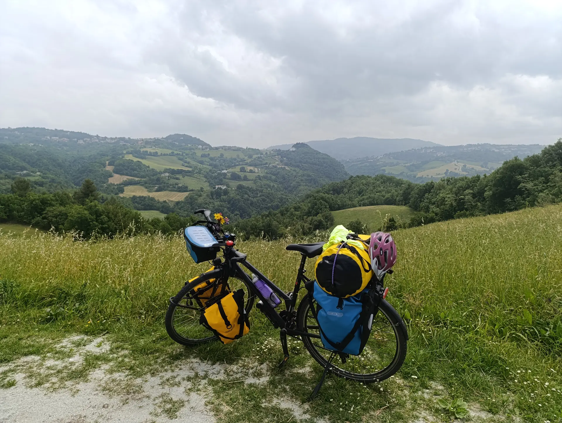 Auf dem Campingplatz wurden wir freundlich begrüßt und gefragt, ob wir einen Platz mit Panoramablick möchten: Klaro, auch wenn das bedeutete, nochmal ordentlich den Hang hochzustrampeln. Aber dann stand das Zelt auf dem Camping Paradiso. Den Abend ließen wir in Carpegna bei einem Teller Nudeln mit Steinpilzen ausklingen.