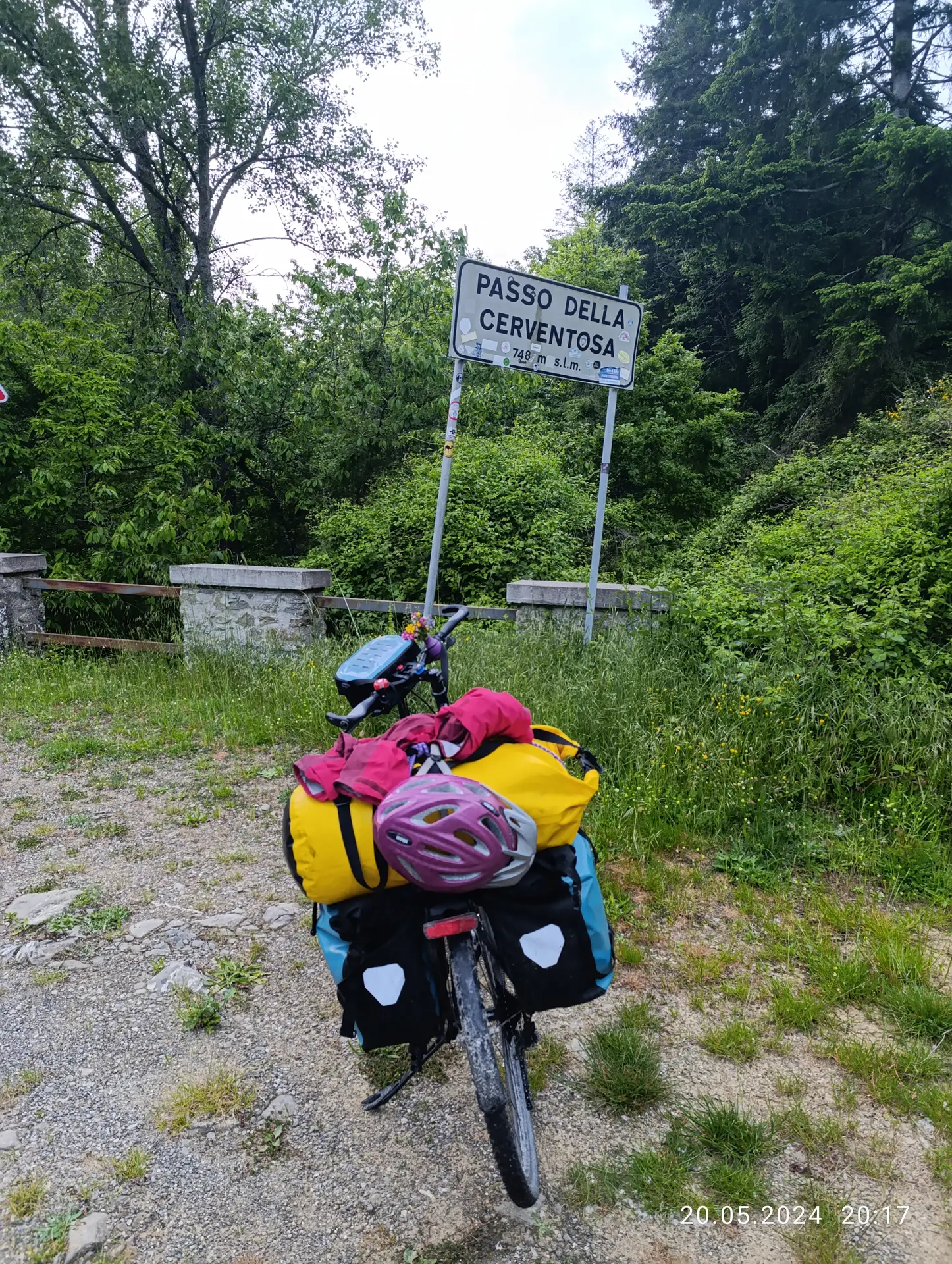 Mittags machten wir eine Pause in Mercatello sul Metauro. Von dort aus ging es auf einer unglaublich schönen, ruhigen und waldigen Straße in Richtung des nächsten Passes. Auf der schottrigen Strada Provinciale 157 standen wir dann voll im Regen und erreichten nachmittags den Cima le Fienaie. Die Abfahrt von dort oben war eine der schönsten der ganzen Reise; die Sonne kam wieder raus und es war wieder warm. Im Tal angekommen, folgte eine relative Schnellfahrstrecke von Città di Castello in Richtung Verna, auf der wir ziemlich geheizt sind, um doch noch den letzten Pass in Angriff zu nehmen.
