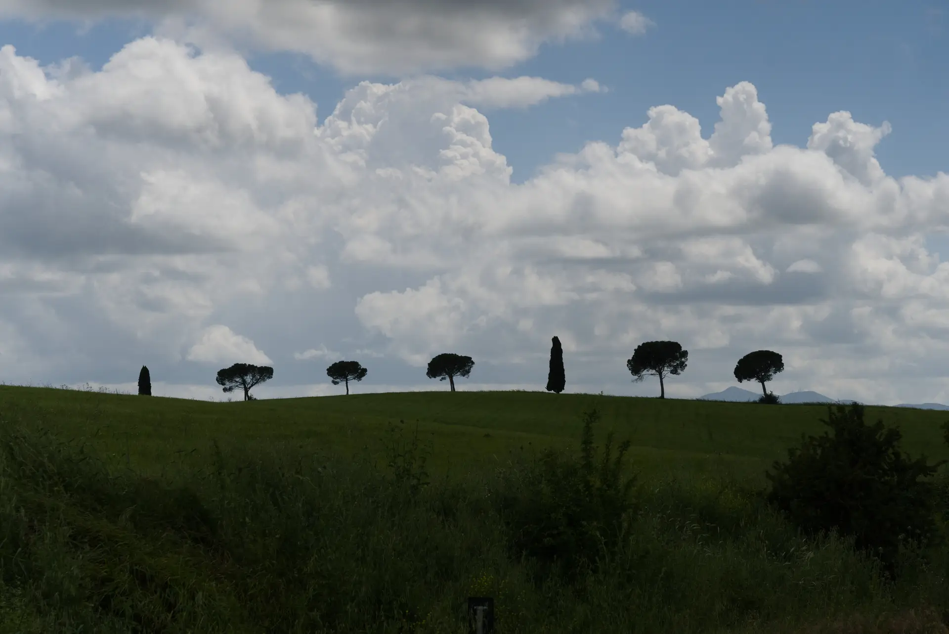 Nachmittags erlebten wir einen dieser perfekten Momente: Von einem kleinen Ort aus fuhren wir eine traumhafte, gerade Straße hinab, gesäumt von Zypressen. Kurz danach kam Siena in den Blick, während wir schon ein heftiges Gewitter im Rücken spürten.