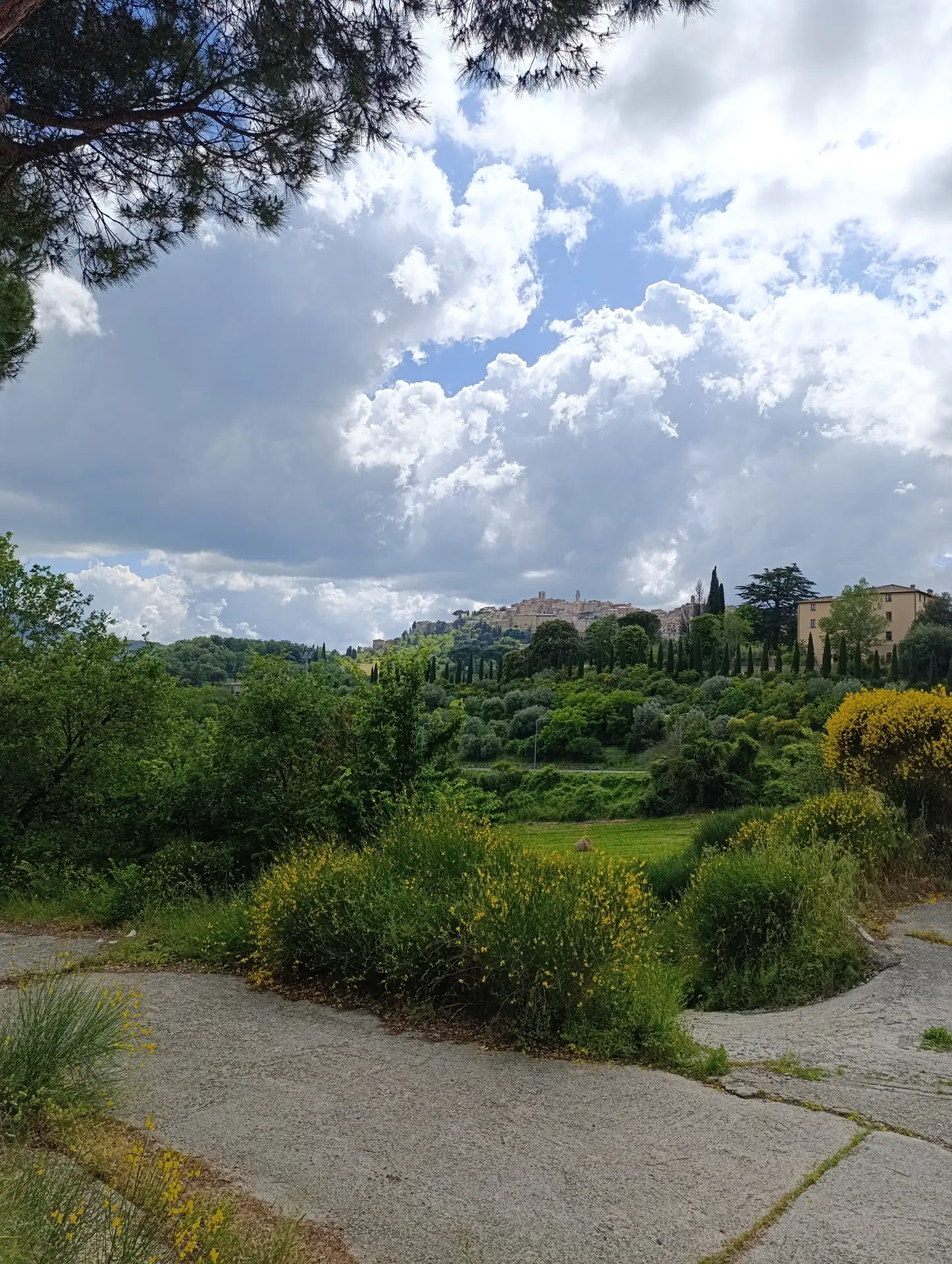 Unsere erste Tour führte uns nach Colle di Val d’Elsa. Unterwegs machten wir eine Piadina-Pause in der beeindruckenden Festungsanlage von Monteriggioni. In der Abtei Badia a Isola fanden wir kurz darauf Unterschlupf vor einem heftigen Regenschauer und nutzten die Zeit, um die dortige Ausstellung zu besuchen. Einem Geheimtipp einer Freundin folgend, entdeckten wir später noch einen herrlichen Wasserfall an einem kleinen Fluss, der zum Baden einlud – ein perfekter Ausflugsort.