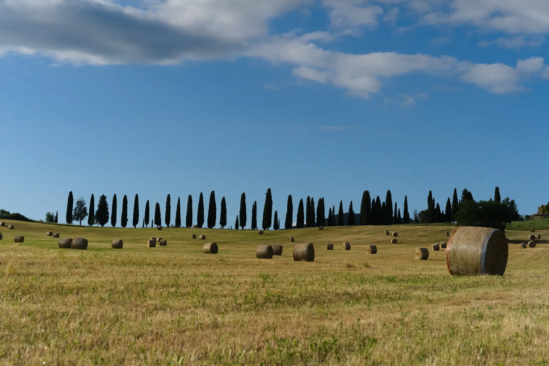 [Hier passt ein Foto der sanften Hügel der Toskana mit Weinbergen und Zypressen.]