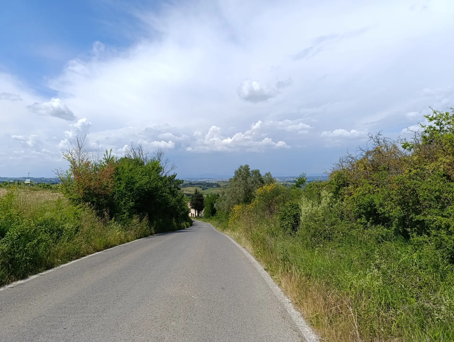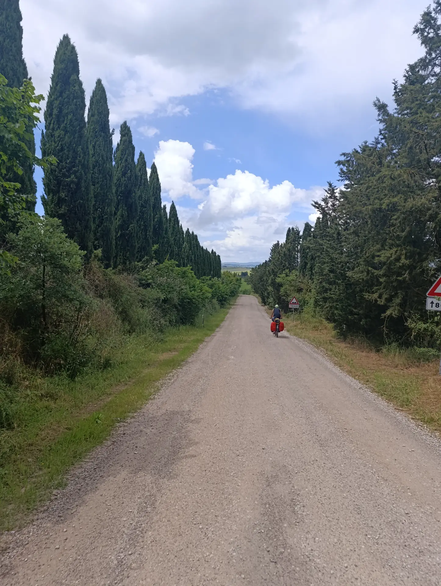 Von unserem Traum-Campingplatz in Romita aus sind wir an diesem Morgen auf einer Hügelkette gestartet. Wir folgten die ganze Zeit der Via Romita (SP70), einer traumhaften Straße, von der aus man links immer wieder in die Weite der Toskana blicken konnte. Ob das ein offizieller Radweg ist, weiß ich gar nicht, aber es lohnt sich definitiv.