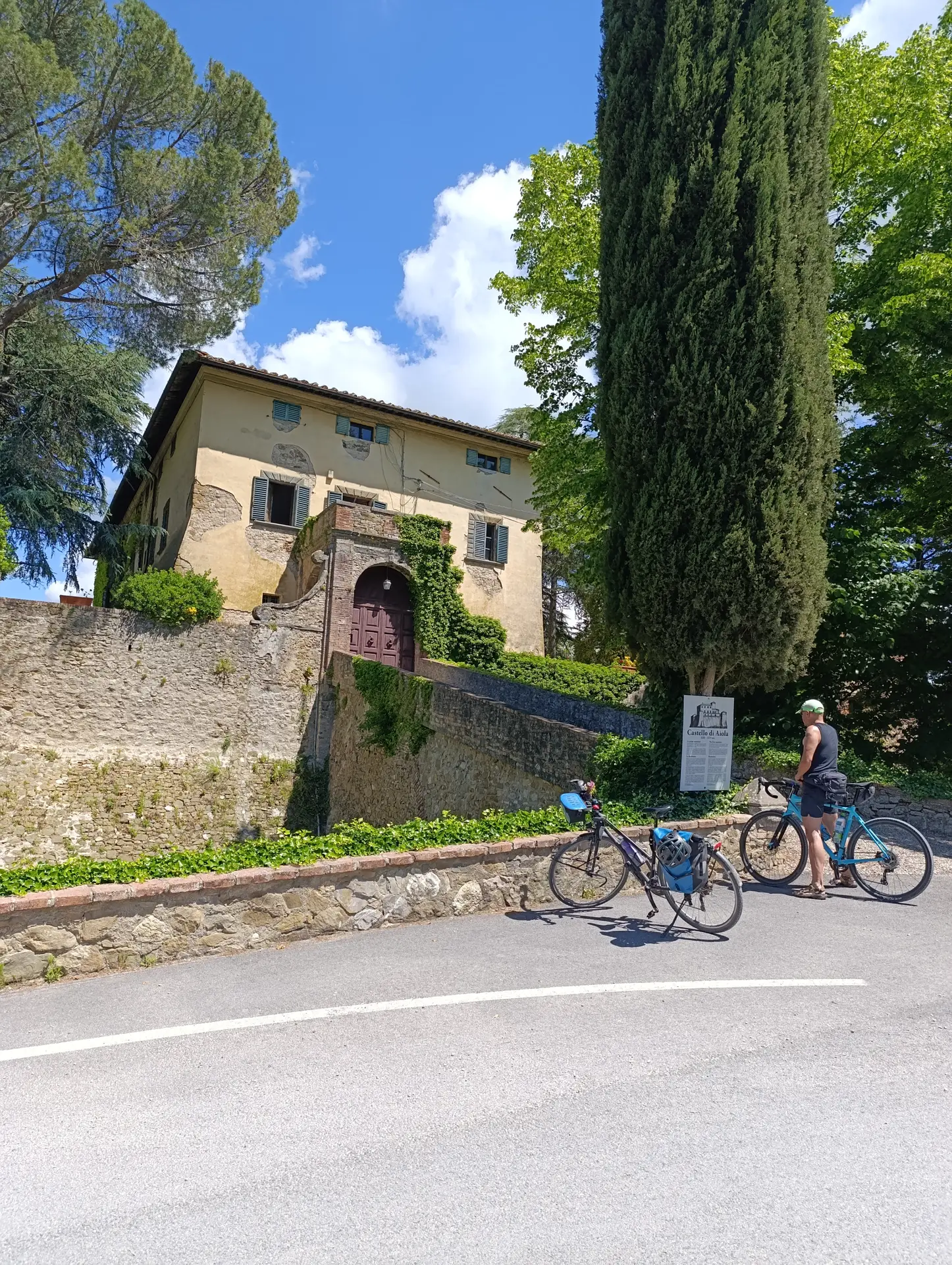Er lud uns zu sich nach Hause ein. Wir konnten verschnaufen, ein paar wunderschöne Fotos schießen und einfach mal ein bisschen mit einem Einheimischen reden. Diese herzliche Begegnung war ein ganz besonderer Moment. Nachdem er uns den richtigen Weg erklärt hatte, sind wir wieder runter nach Cerbaia und haben den eigentlich geplanten, ebenfalls wunderschönen Anstieg über La Romola genommen. Kurz vor Florenz passierten wir noch die imposante Villa I Collazzi, ein beeindruckendes Anwesen.