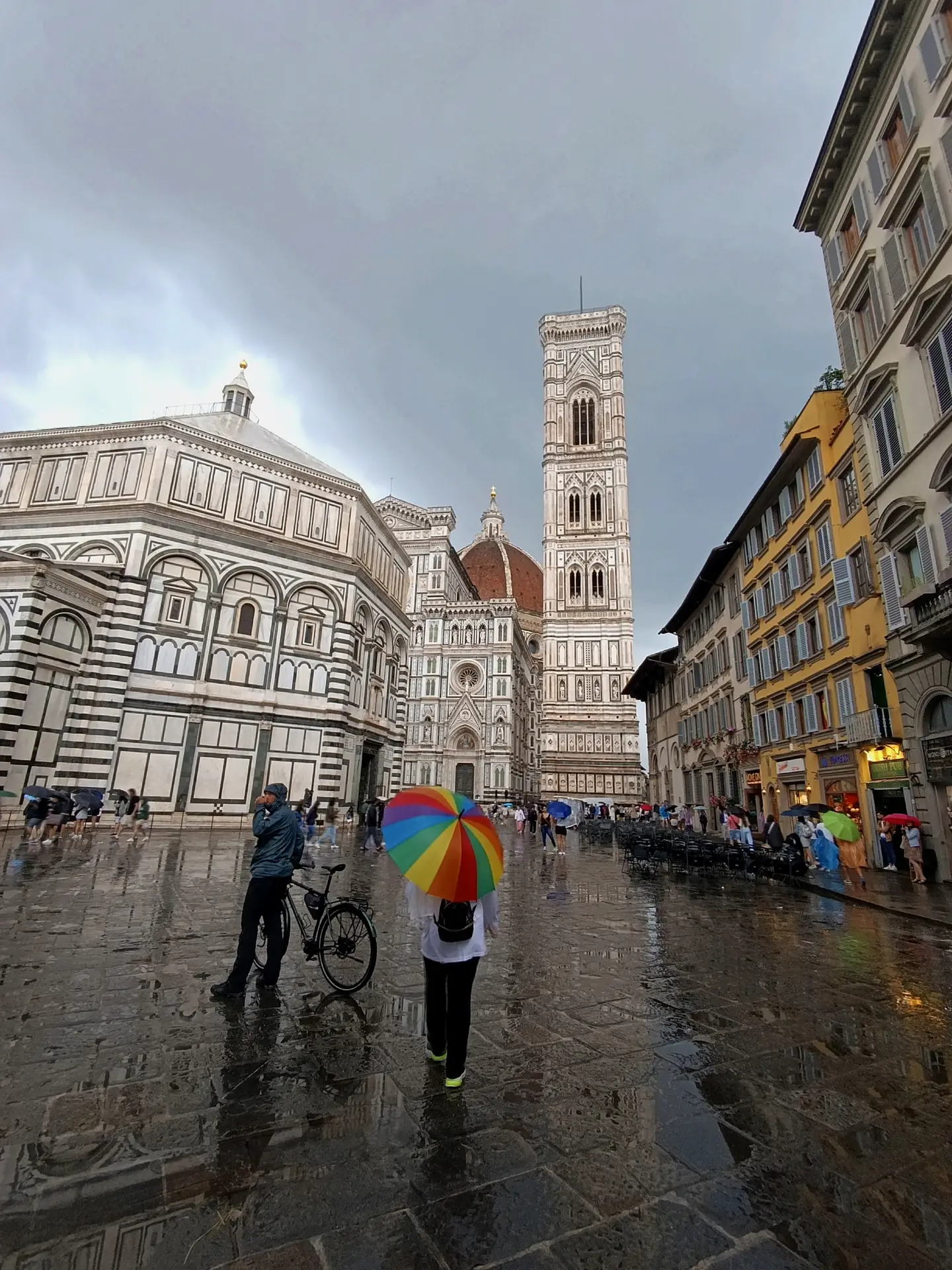 Am Nachmittag wollten wir uns noch schnell die Stadt ansehen. Doch kaum waren wir in Florenz, standen wir eine halbe Stunde auf der Piazza Santa Trinita fest, weil es so unfassbar doll aus Gießkannen schüttete. An ein Weiterkommen war nicht zu denken. Wir haben dann in den Regenpausen noch eine kleine Stadtrunde gedreht und sind dann auch schon wieder zurück zum Campingplatz.