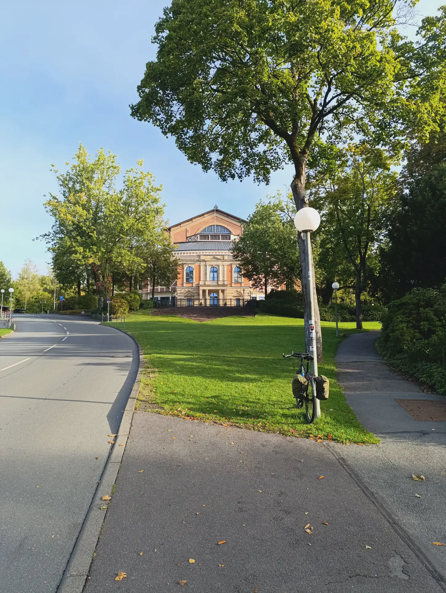 Heute dann auf einer wunderschönen Strecke immer der Pegnitz folgend nach Bayreuth aufgebrochen, das ist schon ein sehr lieblicher Landstrich da. Wer mal in Pegnitz ist: @kaffee.meister macht sensationell guten Kaffee! Dann noch die paar Kilometer bis Bayreuth gerollt, und jetzt guck ich mal ob mich Wagners Geist inspiriert 😅
