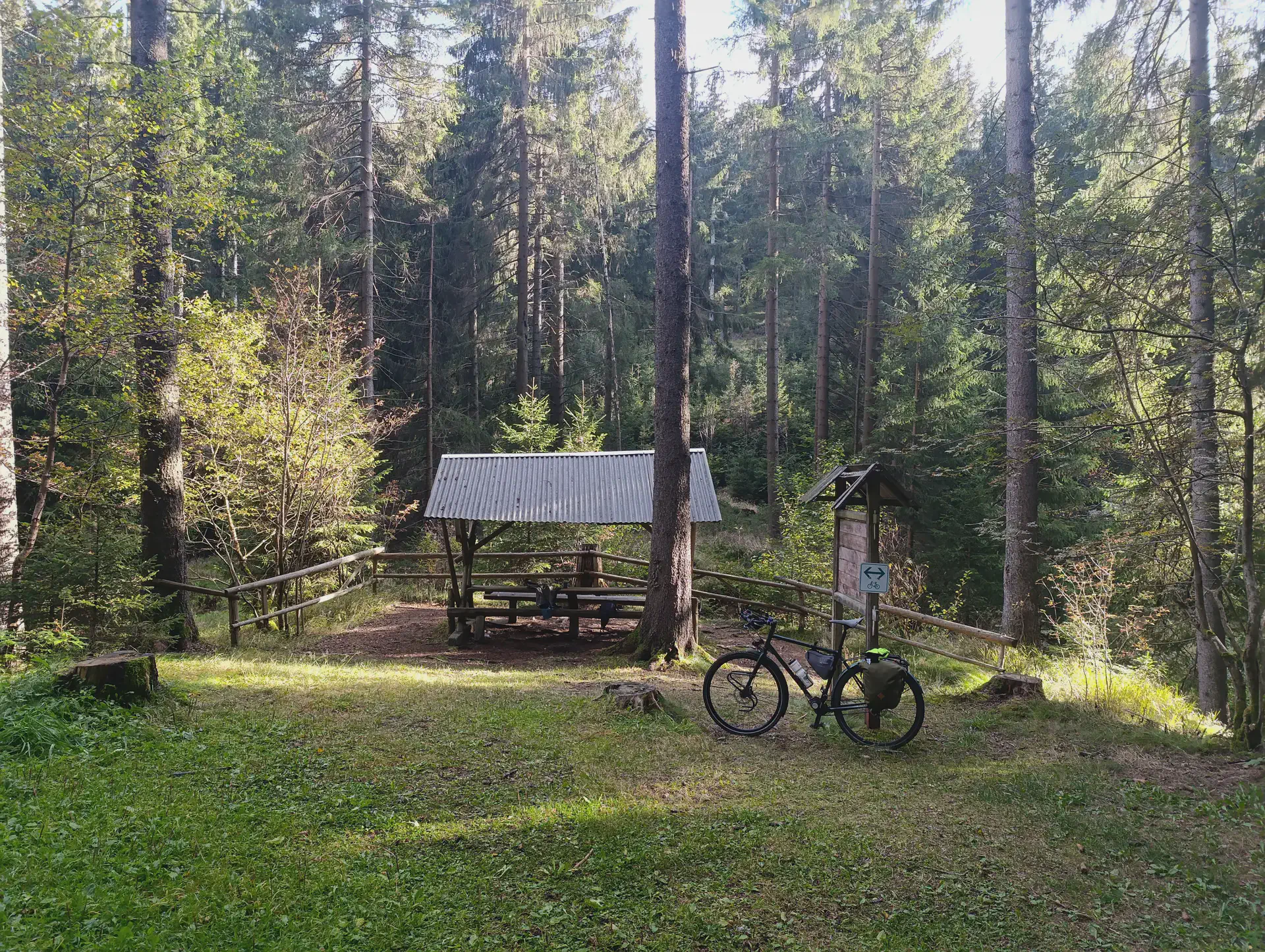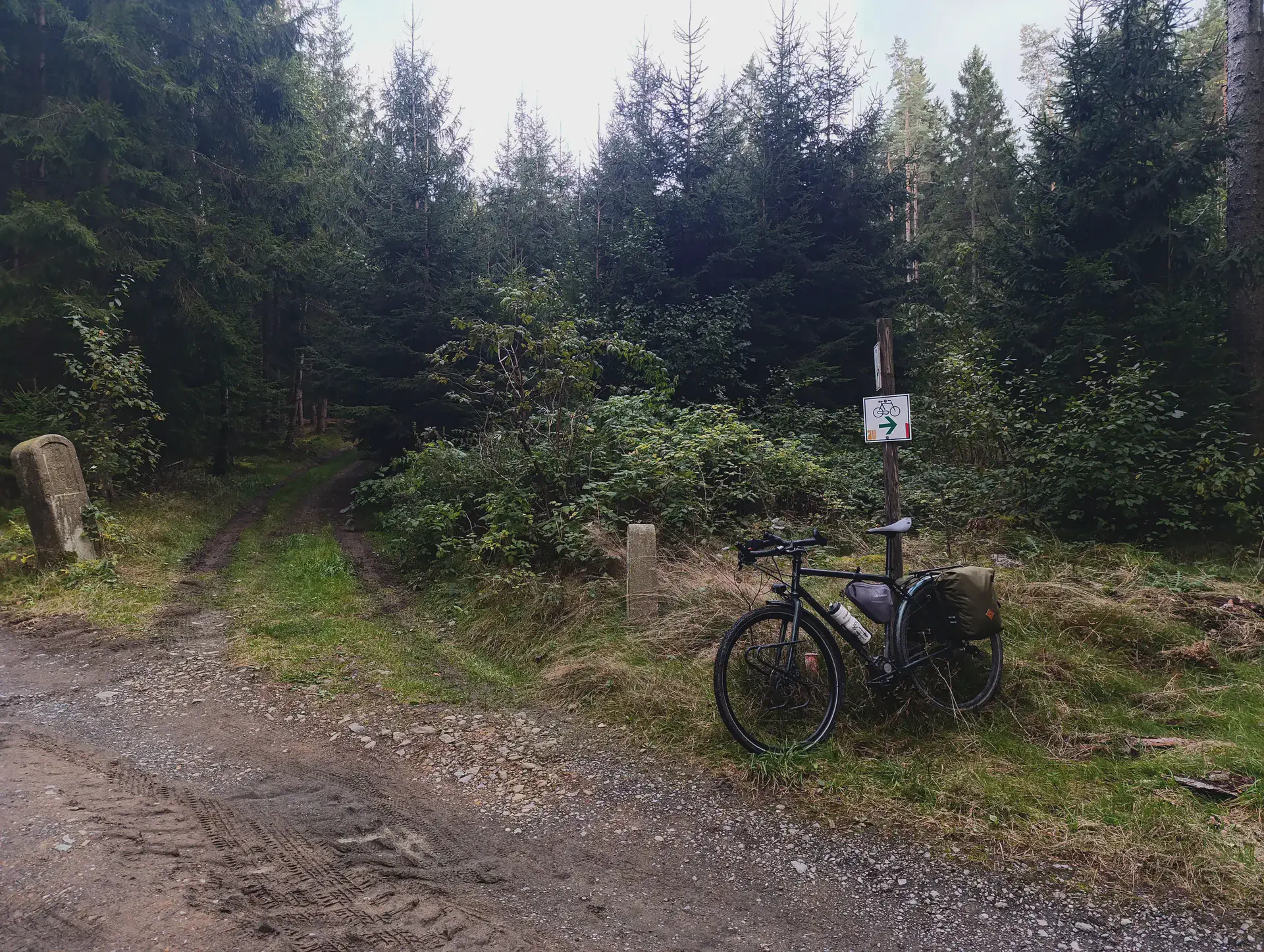 The only way is up. Durch’s Vogtland, vergessene Täler, über Mittelgebirgsgipfel, Hochmoore, um plötzlich kurz vorm einem Gipfel an einem komischen Banner zu stehen welches die Weiterfahrt untersagt, also wieder runter in’s Tal und wieder hoch, was den Zeitplan obsolet gemacht hat. Dann zum Sonnenuntergang in Bozi Dar angekommen, die erstbeste Pension gewählt, herrlich gegessen… um dann festzustellen dass Uli und Jens nur 40m entfernt abgestiegen sind und dann noch einen wunderbaren Abend gemeinsam verbracht. Das war mein Tag, und er war sehr schön😜