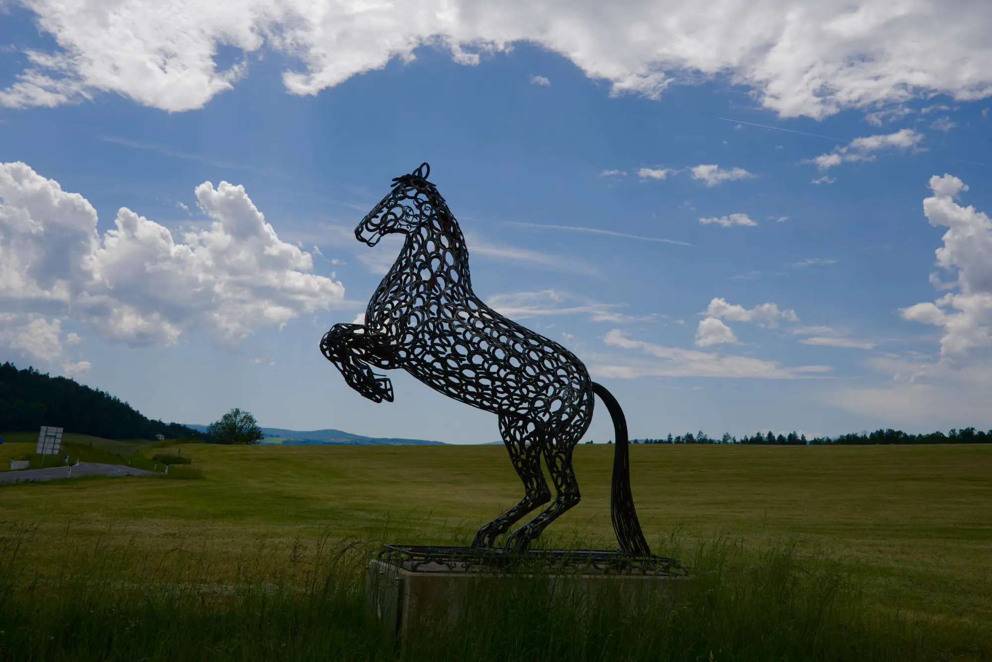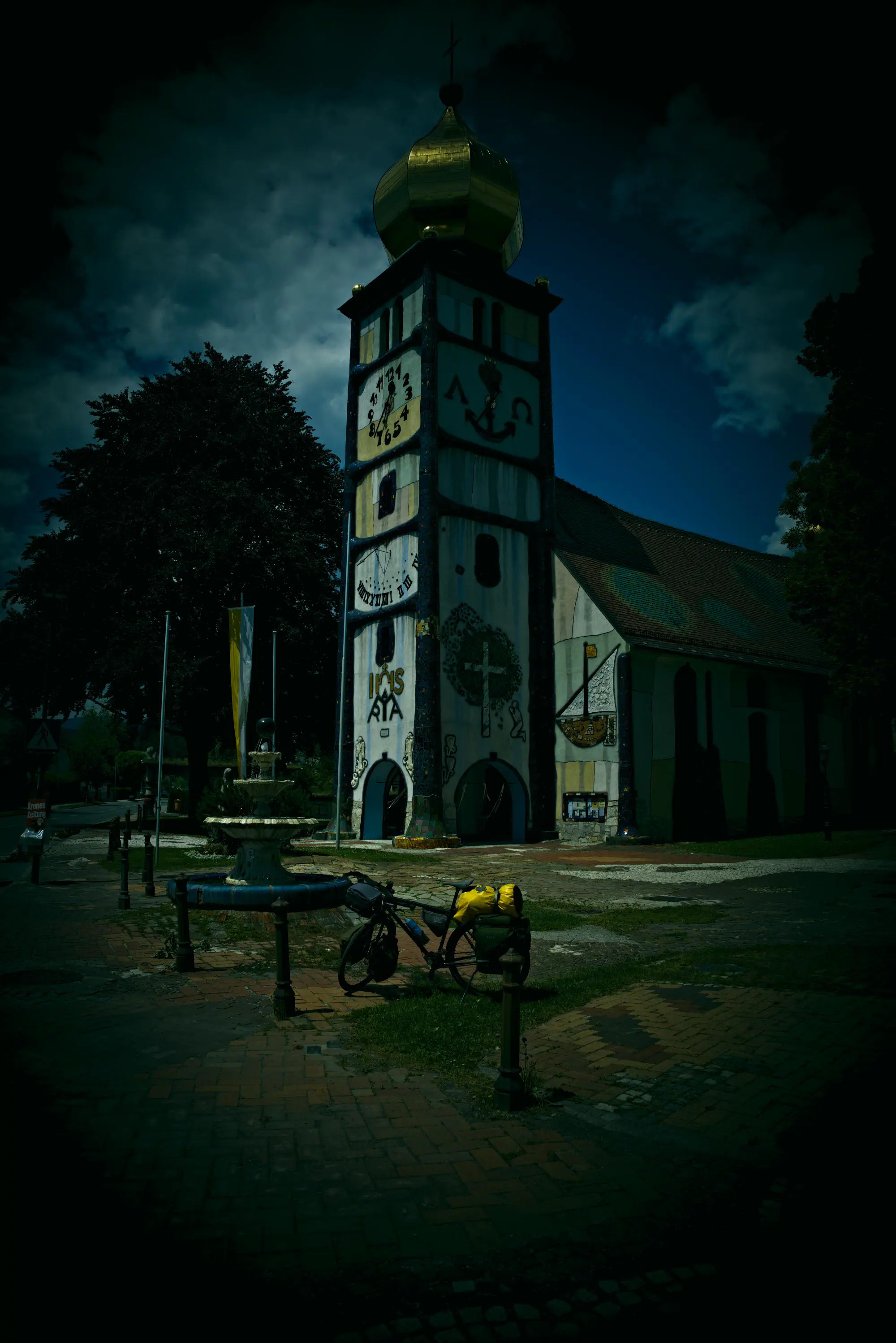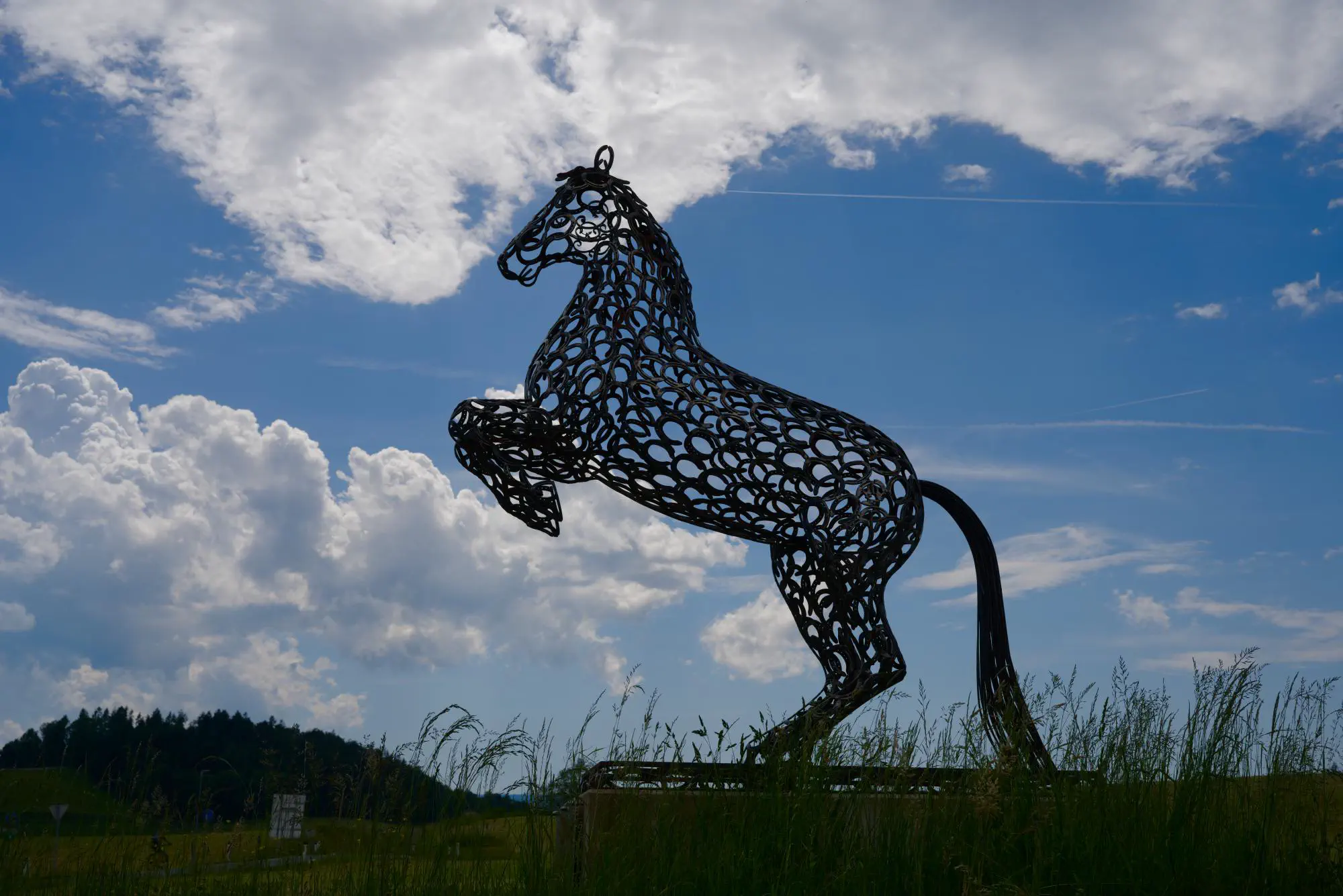 Bei Feldkirchen verließen wir das Murtal und bogen nach Westen ab, wo wir einer ganzen Kaskade von regionalen Radwegen wie dem R14 Kainachtalradweg folgten. Unser erstes großes Zwischenziel war die von Friedensreich Hundertwasser gestaltete St. Barbara Kirche in Bärnbach. Ein wirklich beeindruckendes und farbenfrohes Bauwerk. Danach ging es weiter zum berühmten Bundesgestüt Piber, der Heimat der Lipizzaner.