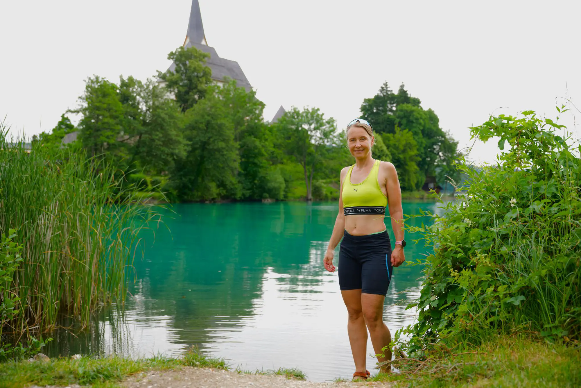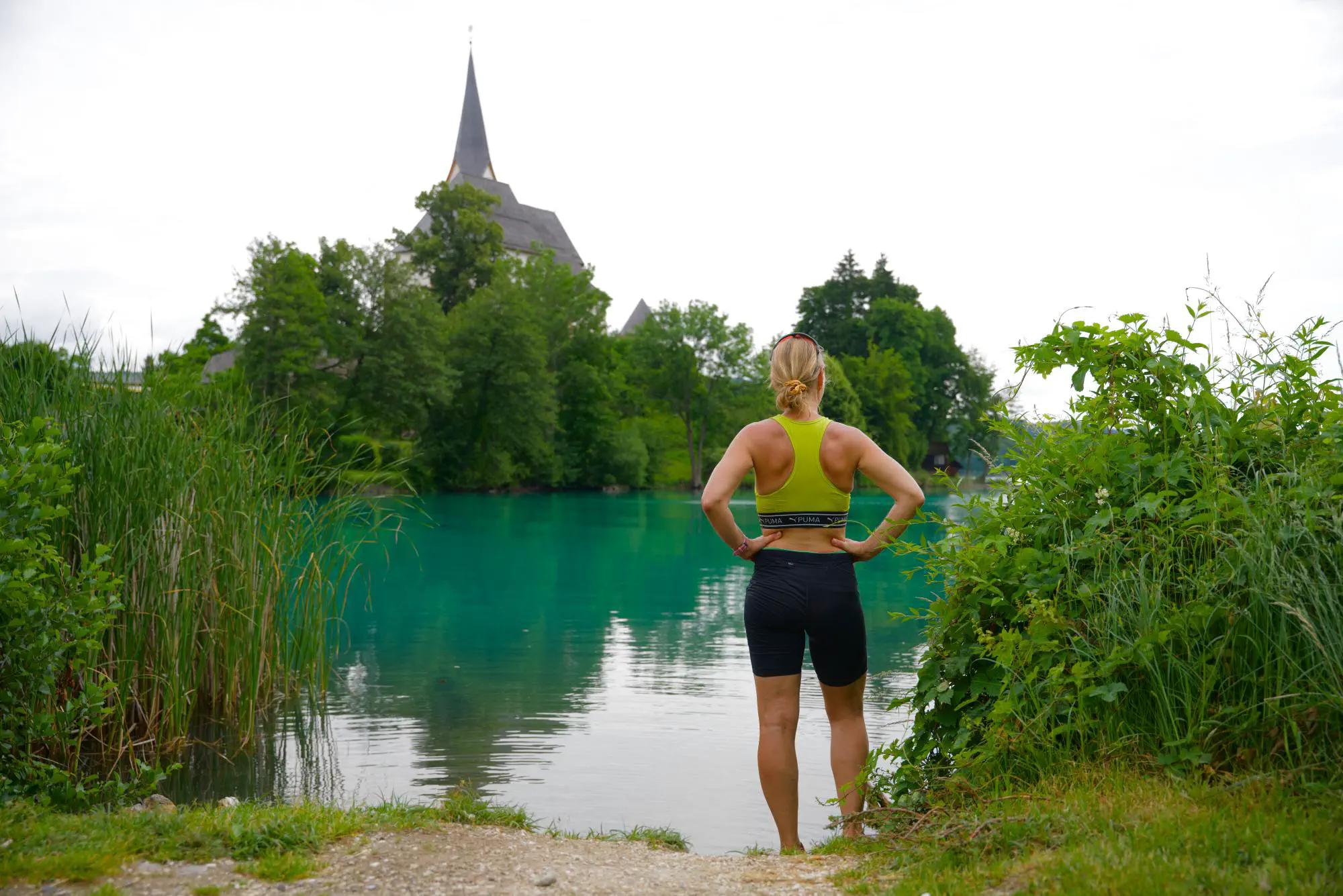 Wir folgten dem Lavantradweg (R10) bis Sankt Paul, bevor der Anstieg im Granitztal begann, parallel zum Griffener Berg. Der Stammtisch am Vorabend hatte ihn den “Griffener Brenner” genannt — eine sensationelle Bezeichnung für diese steile Rampe. Von oben ging es dann auf einem sehr schönen Radweg hinunter zum Völkermarkter Stausee, wo eine herrliche Bade-Pause die überhitzten Muskeln kühlte.